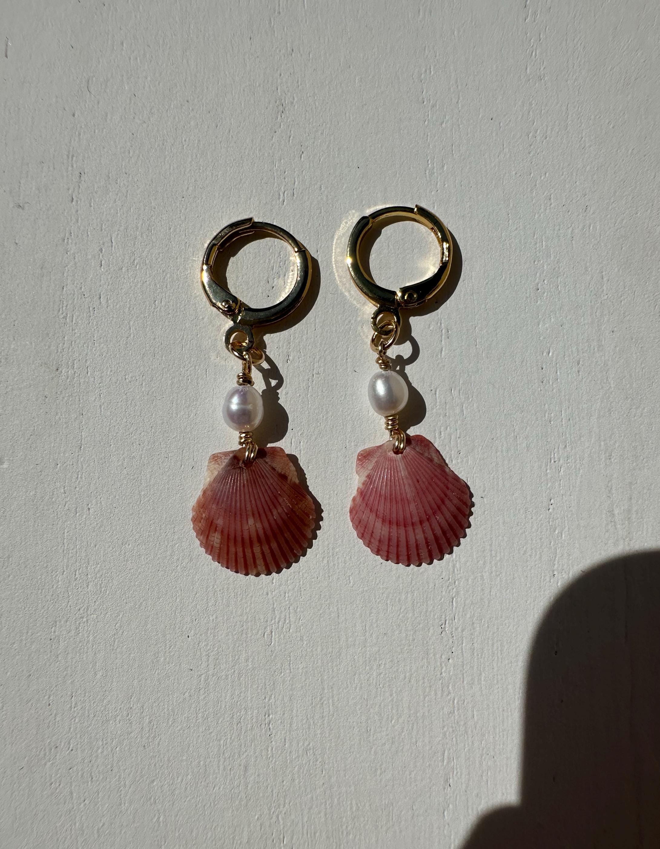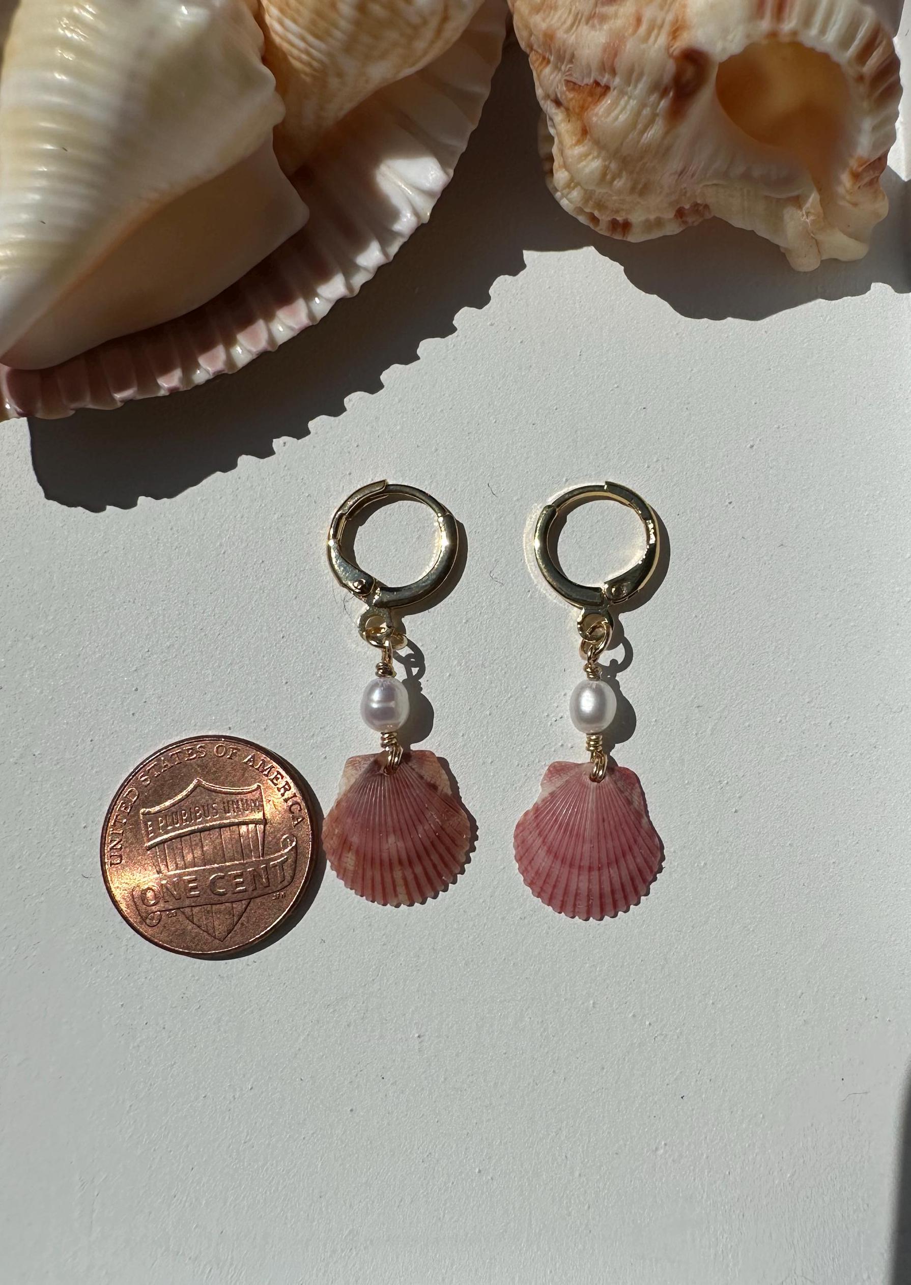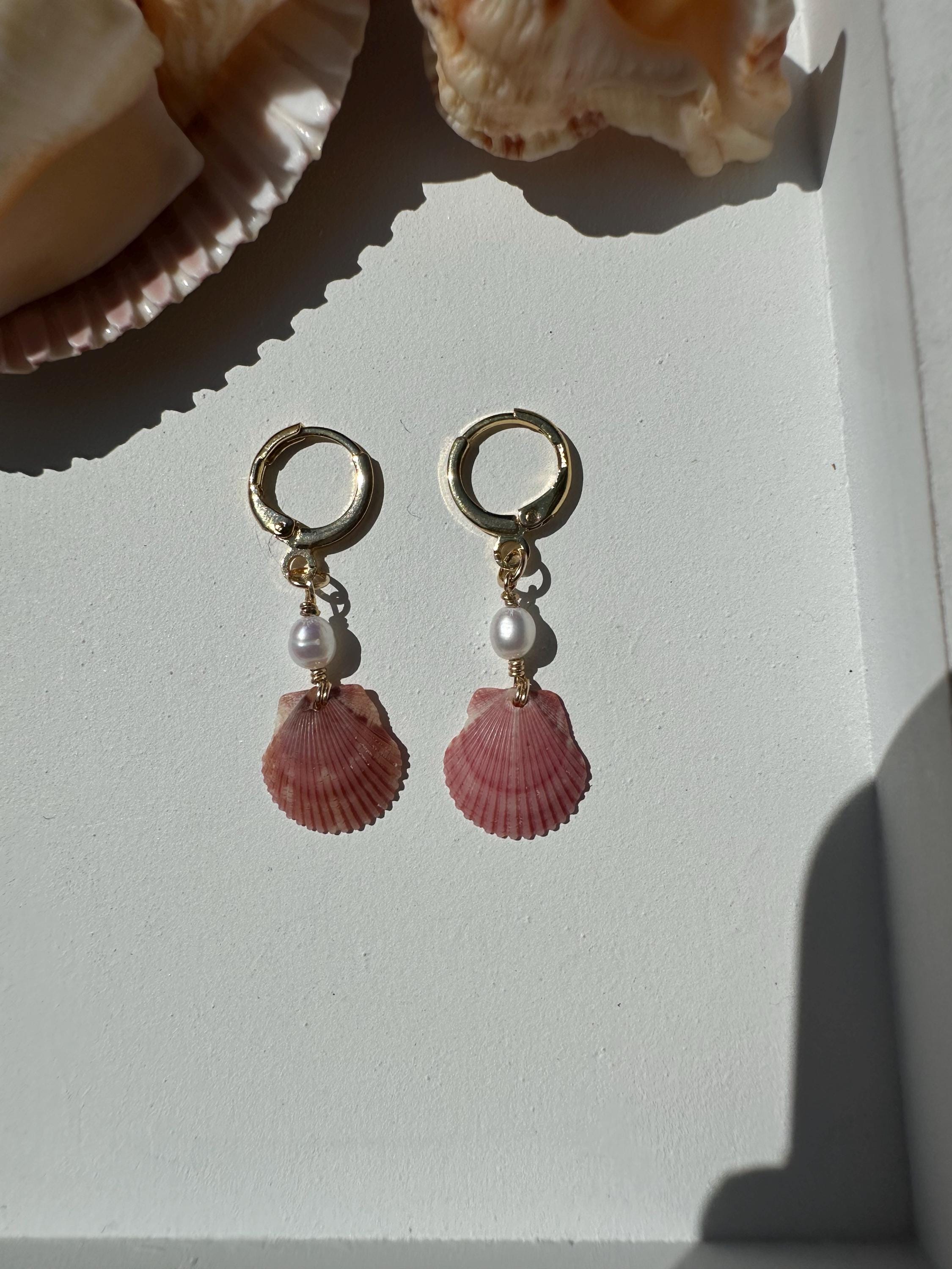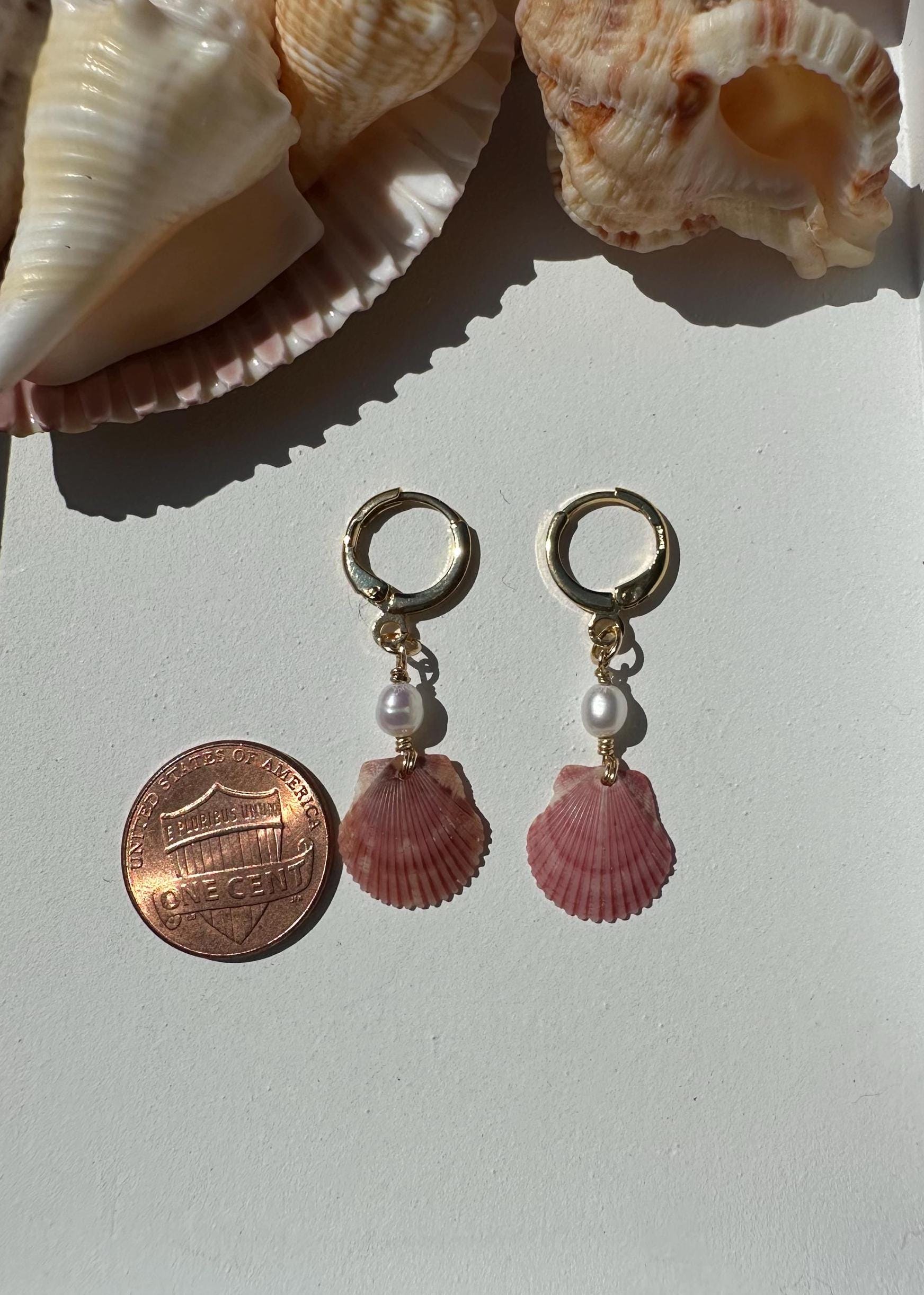 Dainty Shell and Pearl Earrings, 18k Gold Plated, Handmade