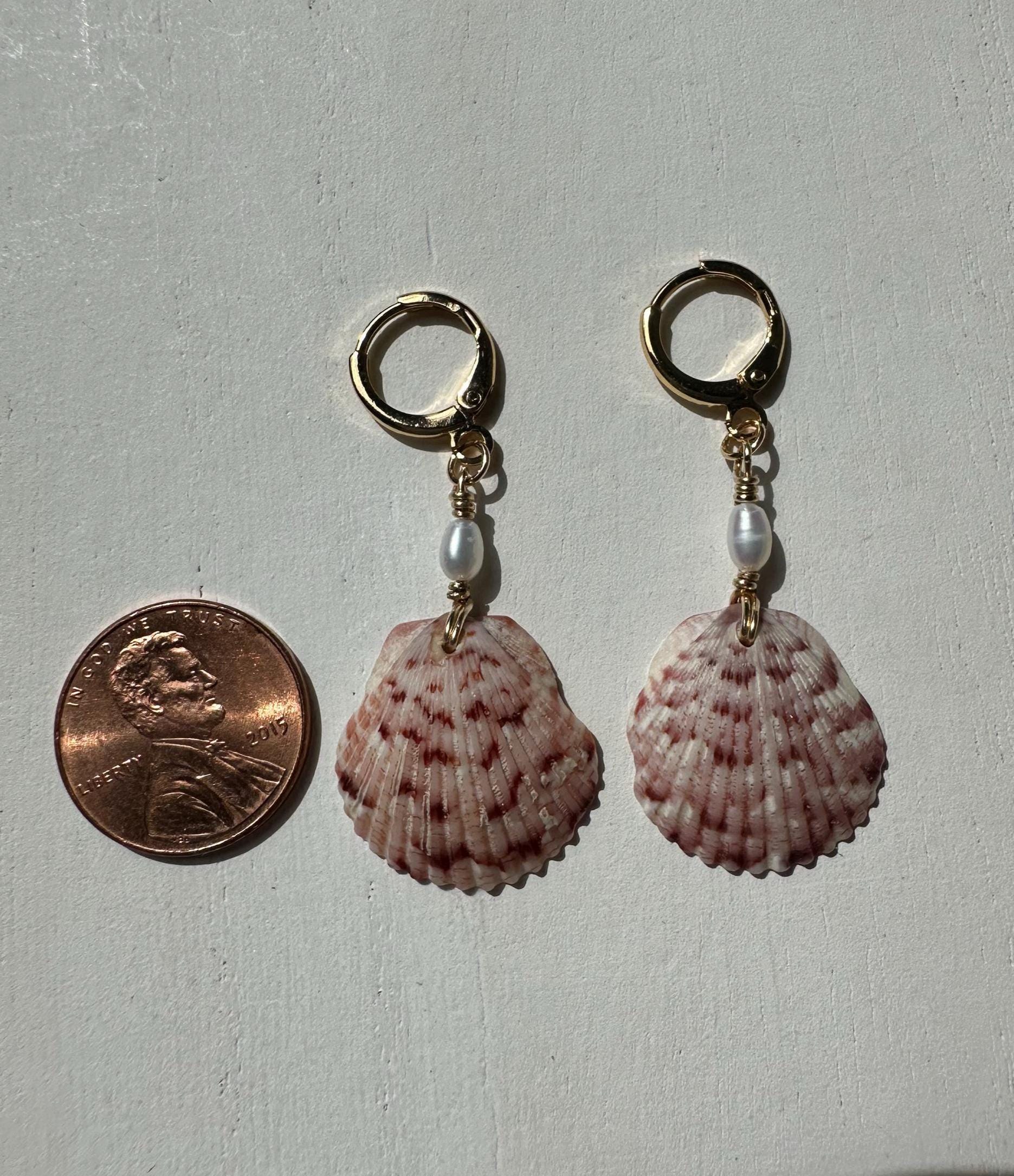 Shell and Pearl Earrings, 18k Gold Plated Hoops, Handmade