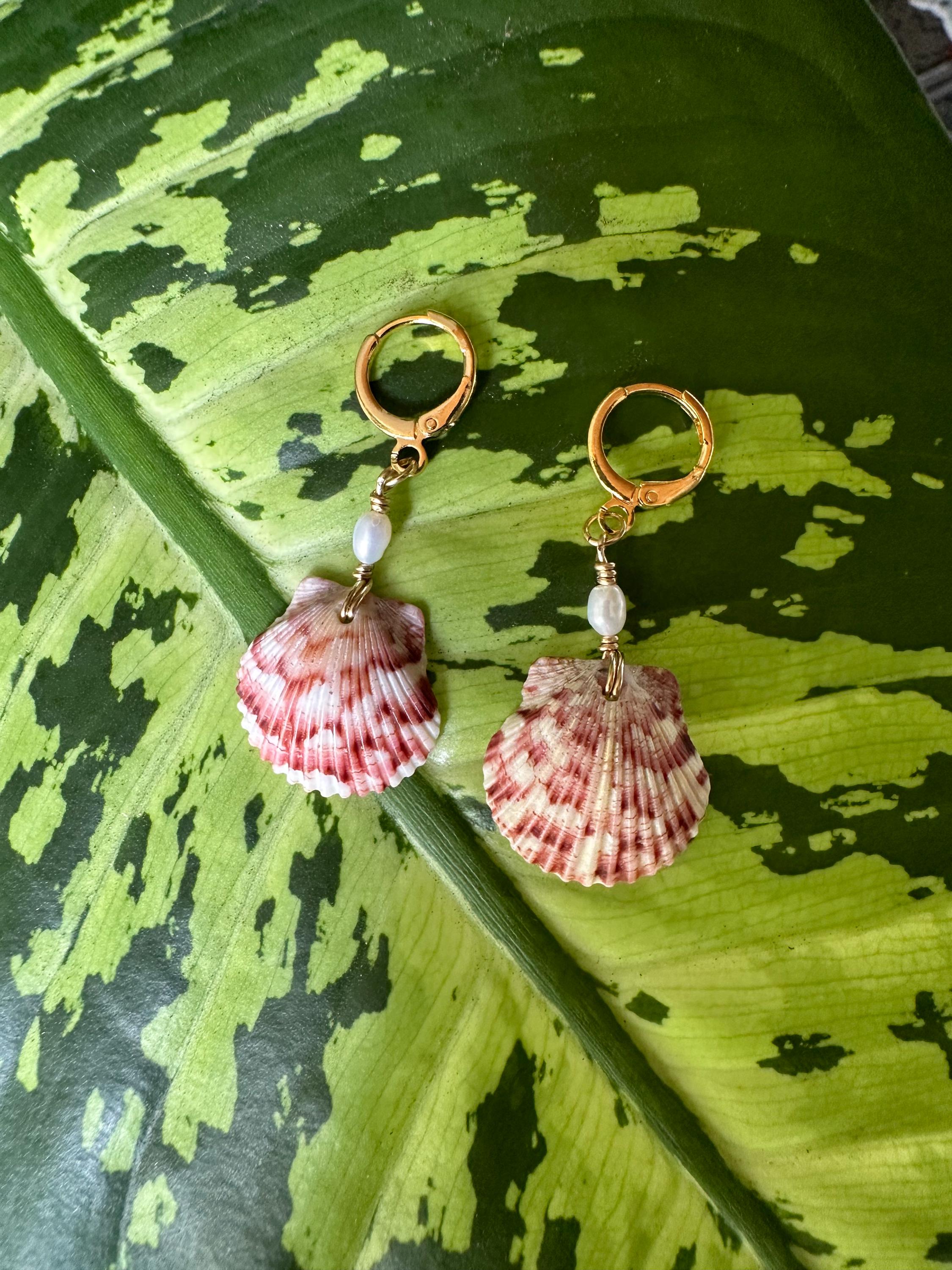 Shell and Pearl Earrings, 18k Gold Plated, Handmade