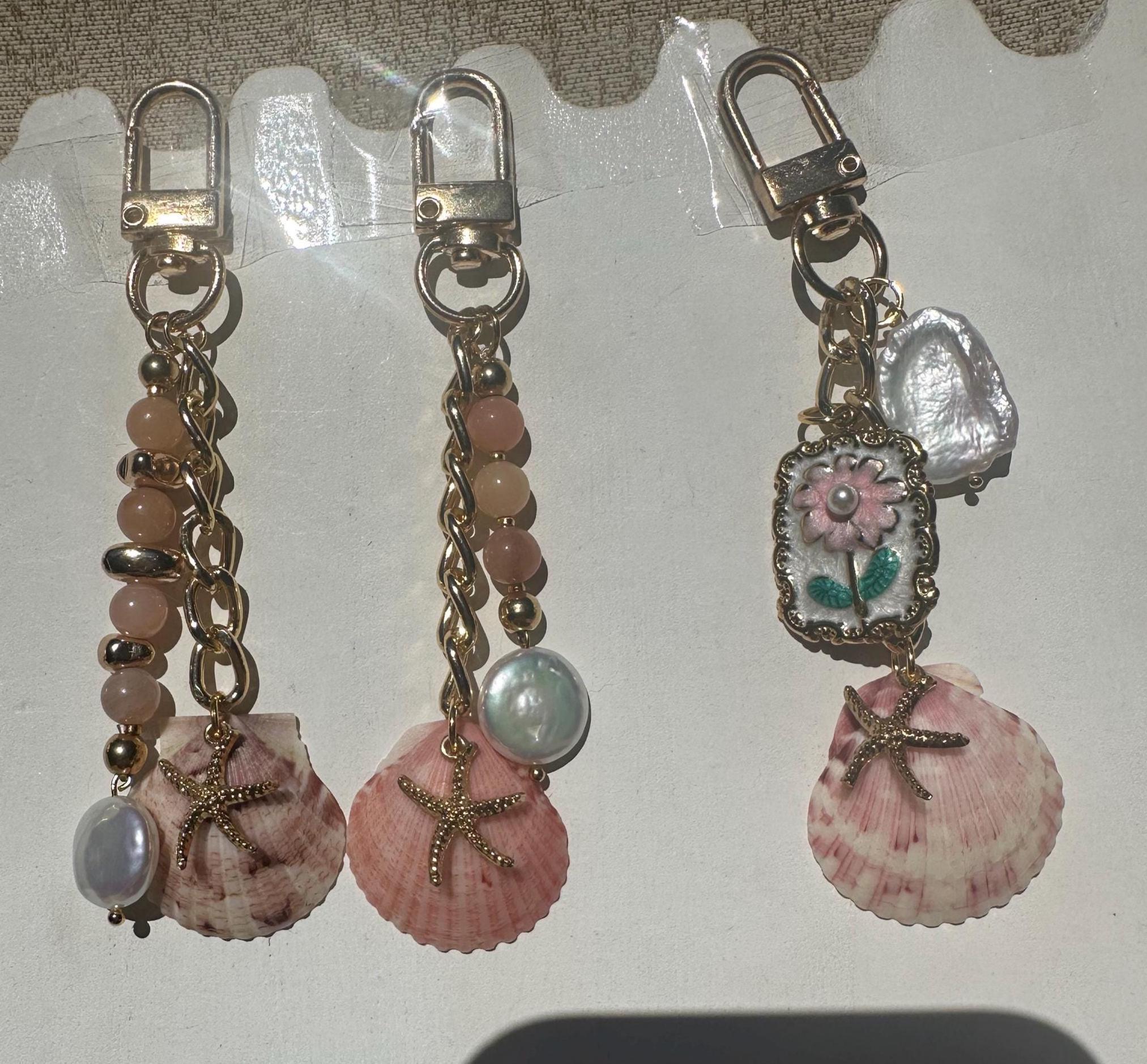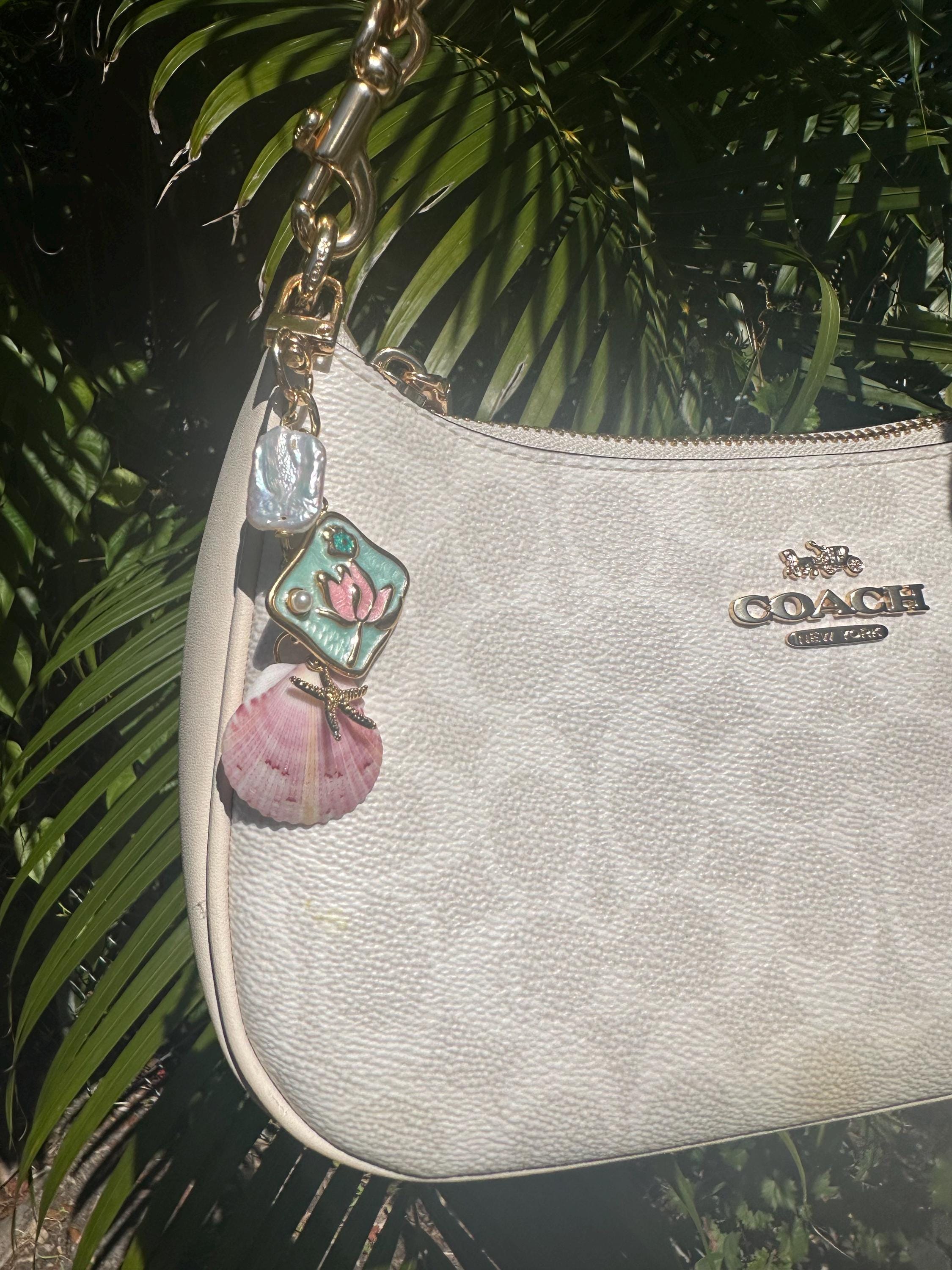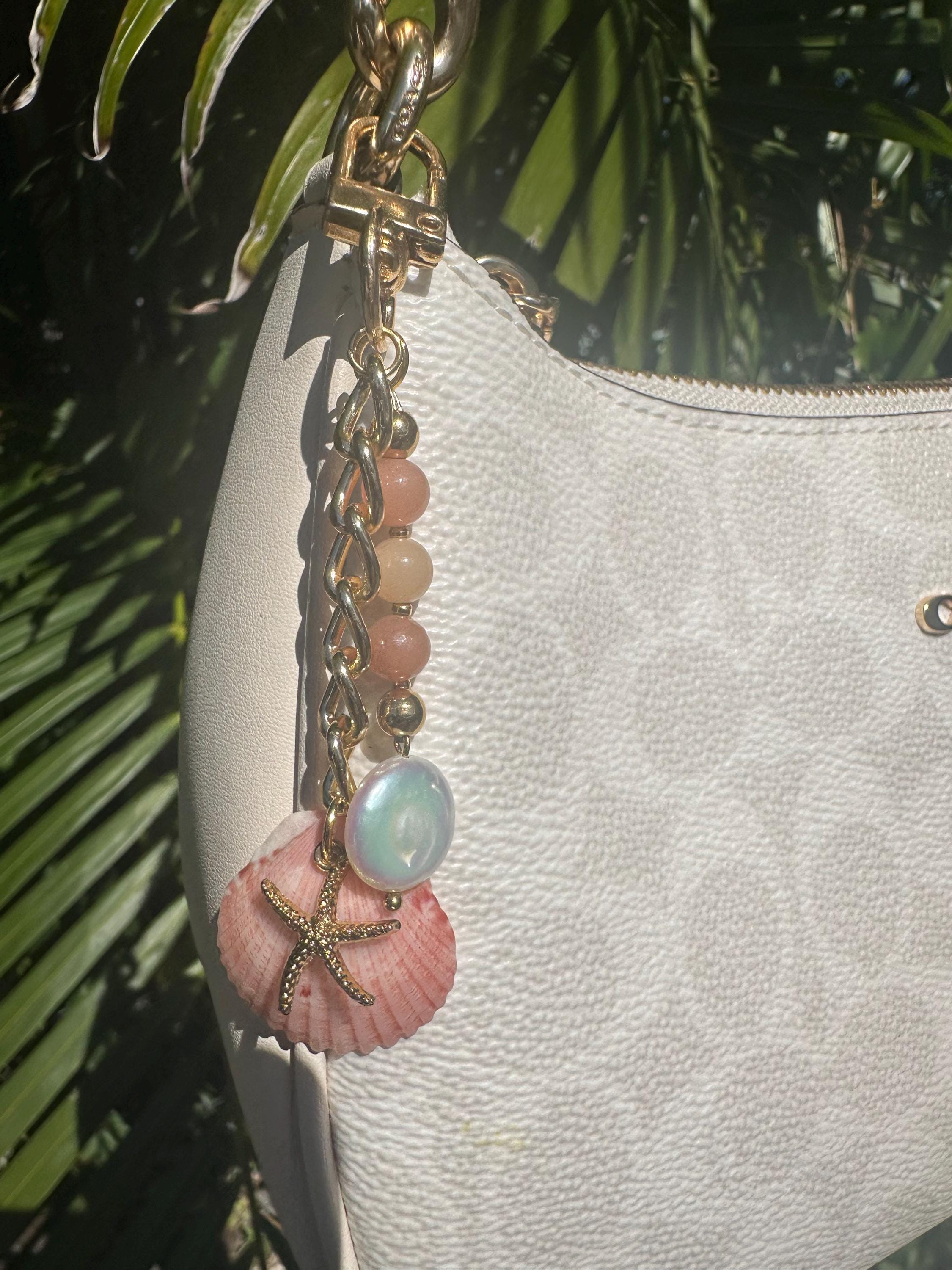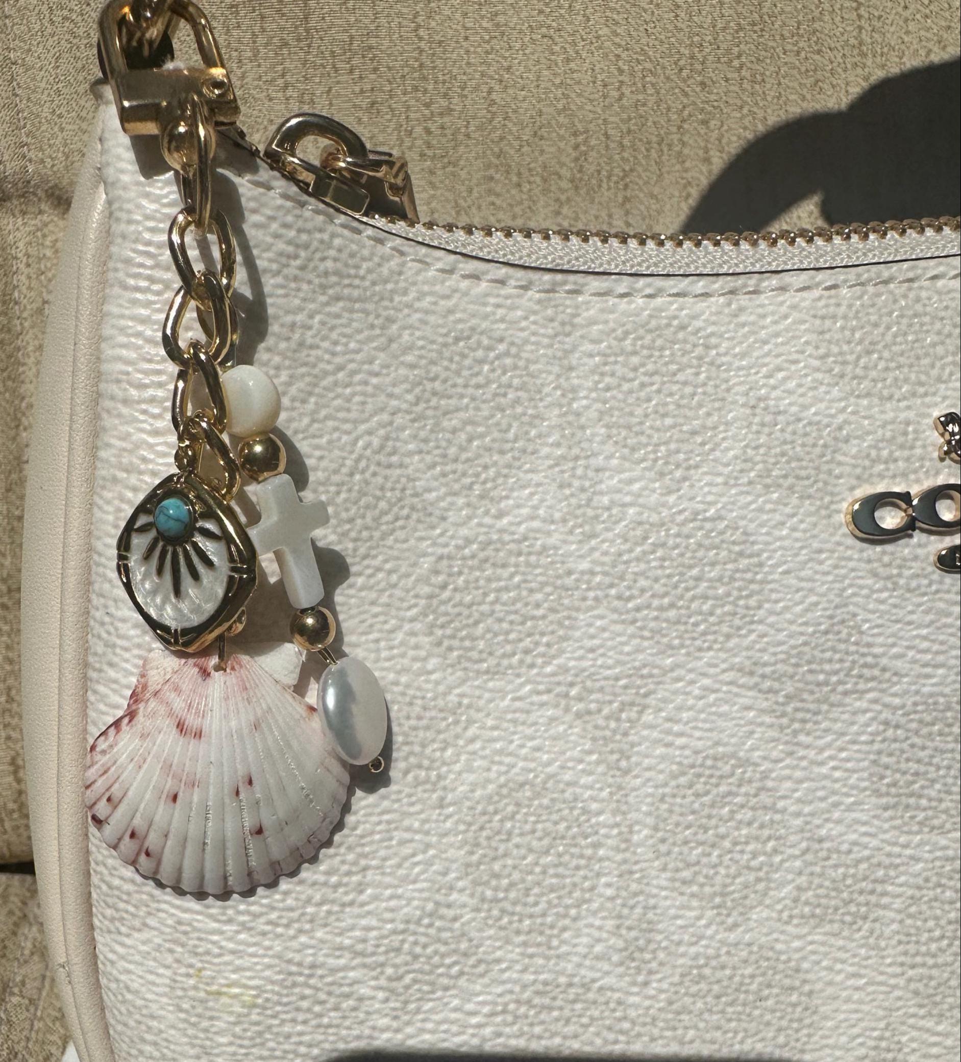 Handmade Shell Purse Charm, Beach Keychain, Custom Charm