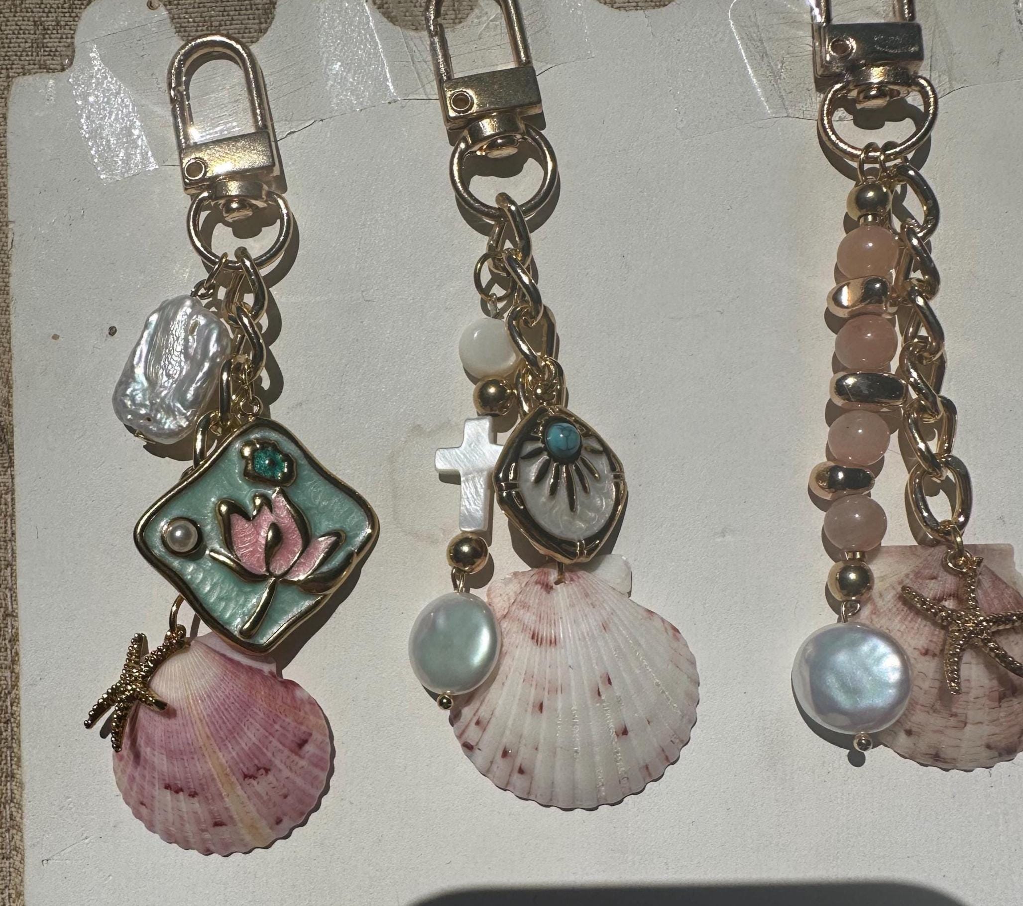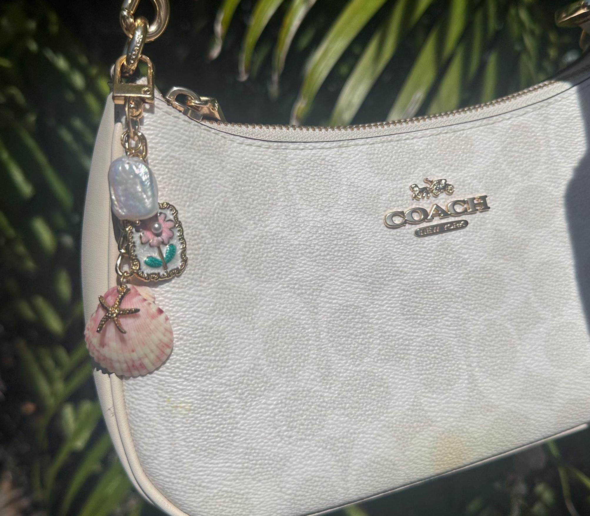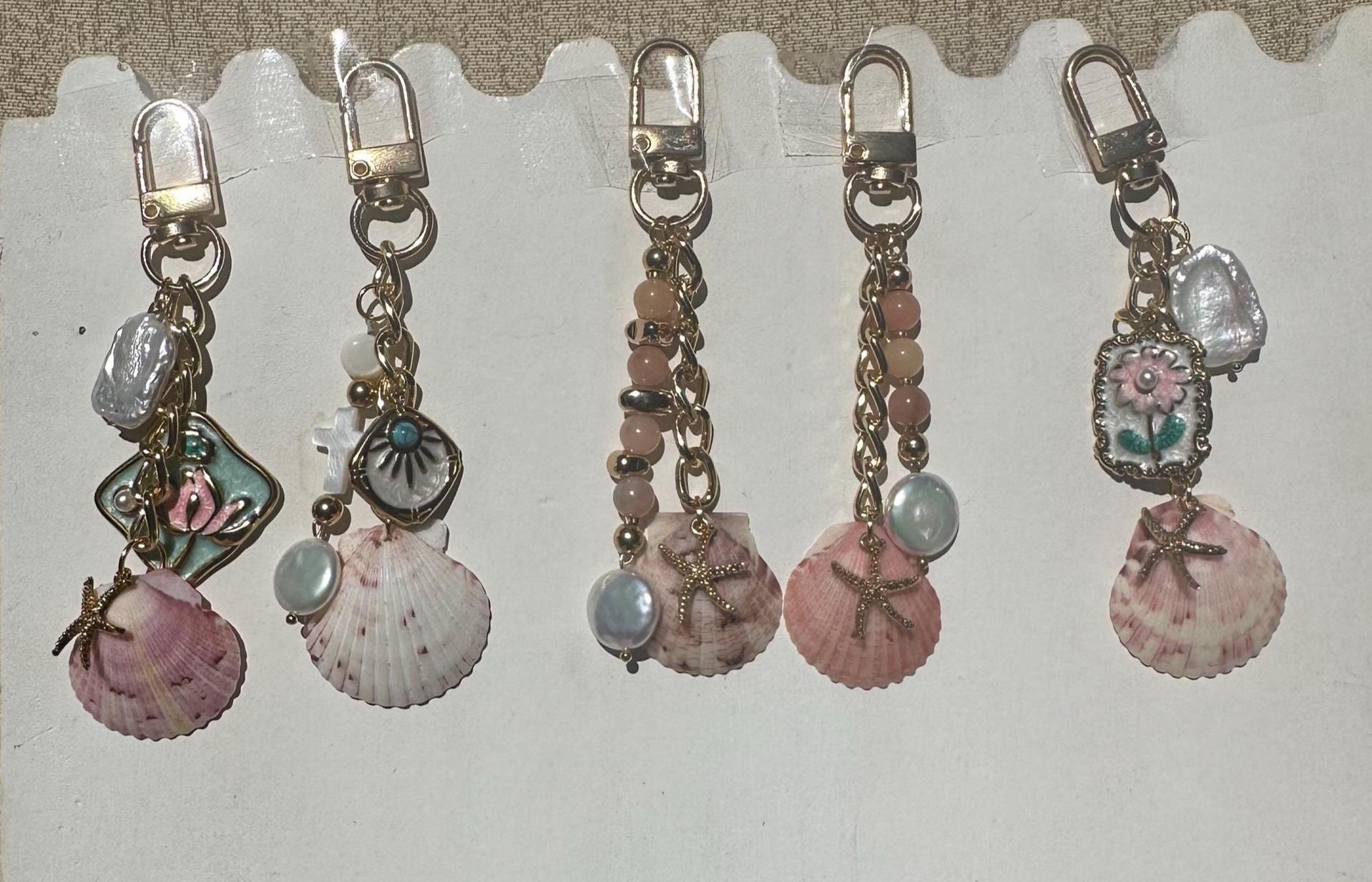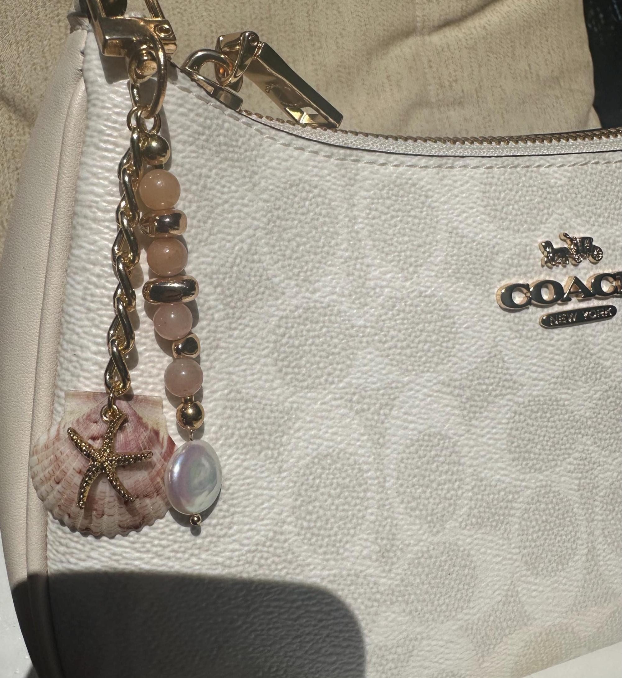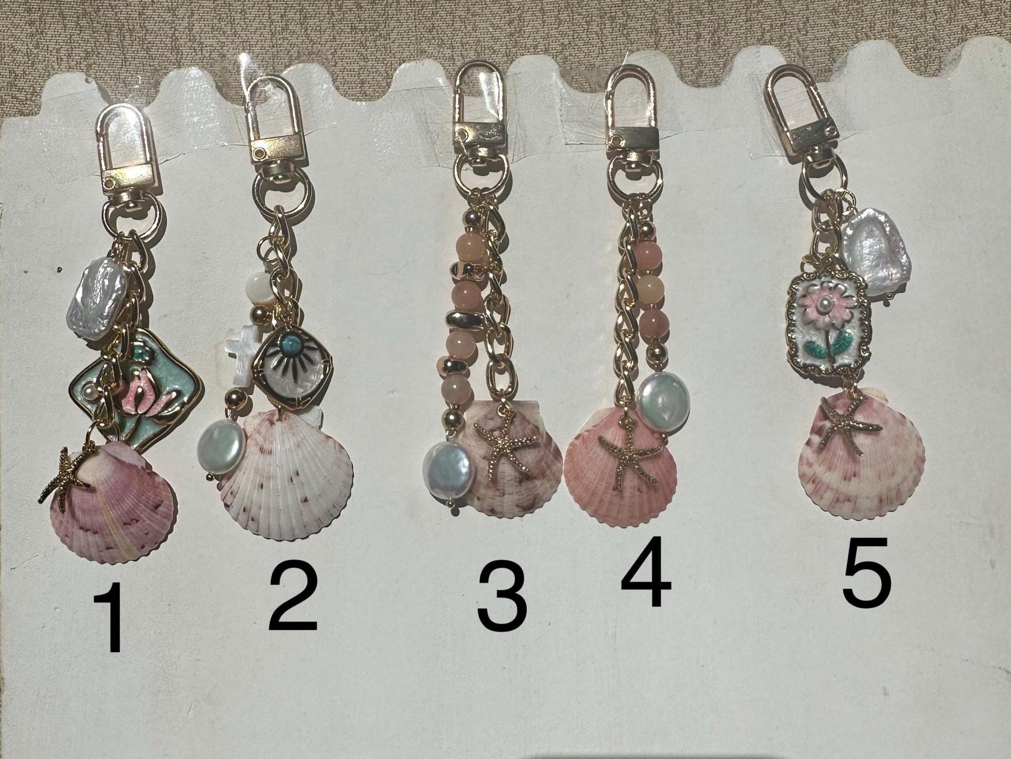 Handmade Shell Purse Charm, Beach Keychain, Custom Charm